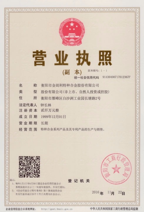 衡陽(yáng)市金則利特種合金股份有限公司